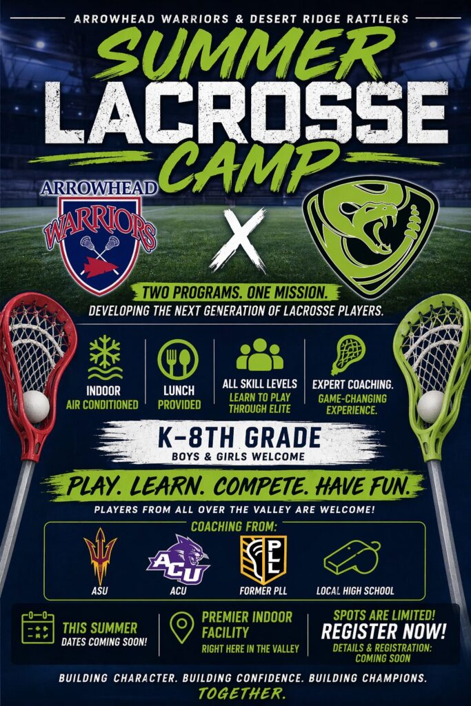 Arrowhead Lacrosse Camps – 20267/1/20269:00am – 12:00pmArizona Sports Complex: Field 1